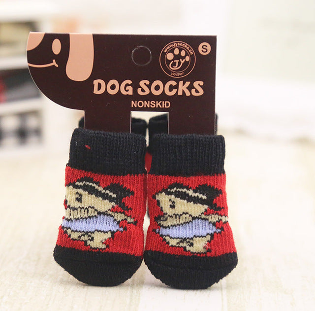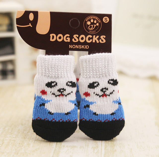 4pcs Warm Puppy Dog Shoes Soft Acrylic Pet Knits Socks Cute Cartoon Anti Slip Skid Socks For Small Dogs Pet Products S/M/L